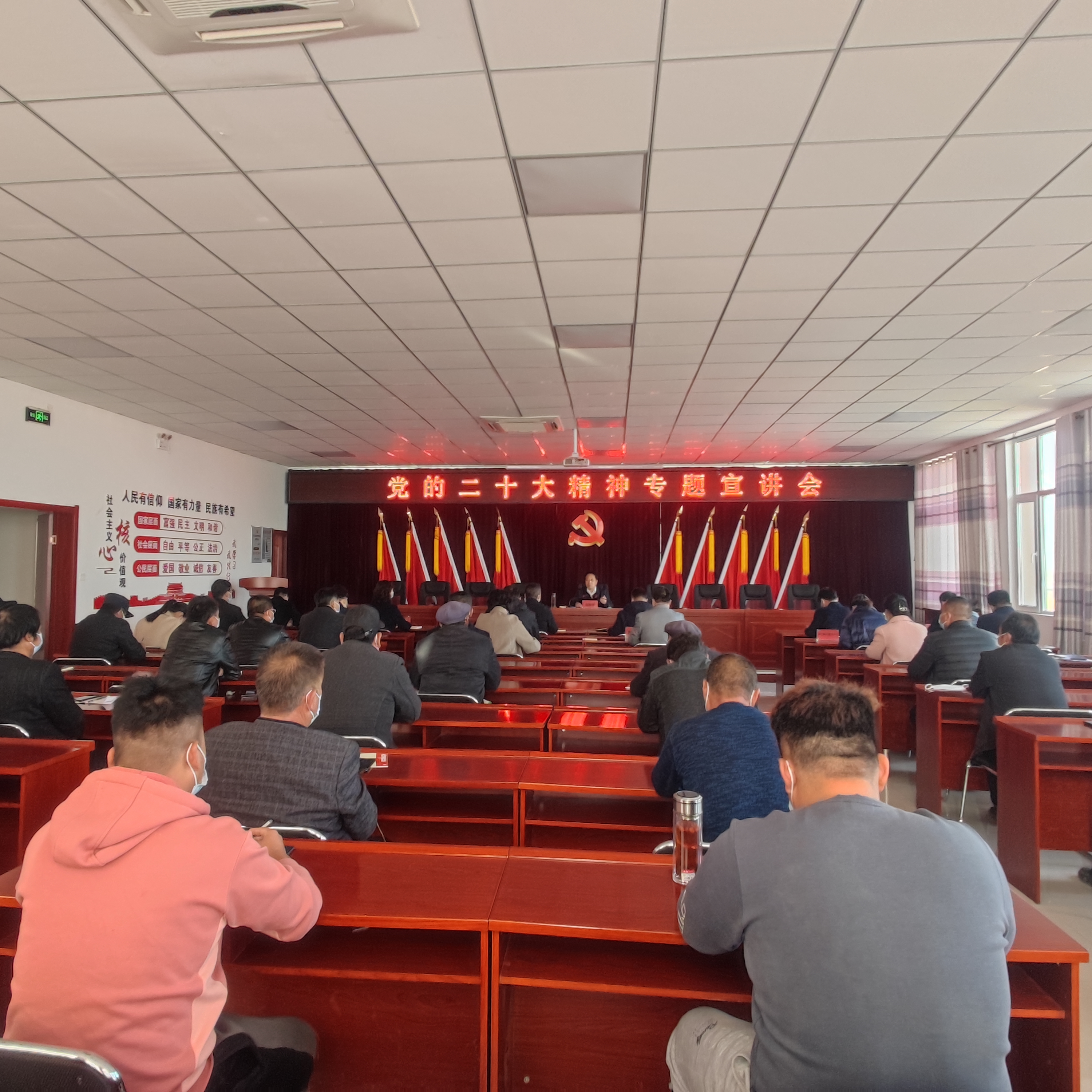 随后,刘智峰用通俗易懂、简单朴实的语言,结合学习的所感所想,从党的二十大取得的成果丰硕、党始终在人民群众身边、老百姓的日子越来越红火、更好的日子还在后头、美好生活都是奋斗出来的这五个方面,向武河村党员干部、群众深入浅出介绍党的二十大召开情况和主要精神。